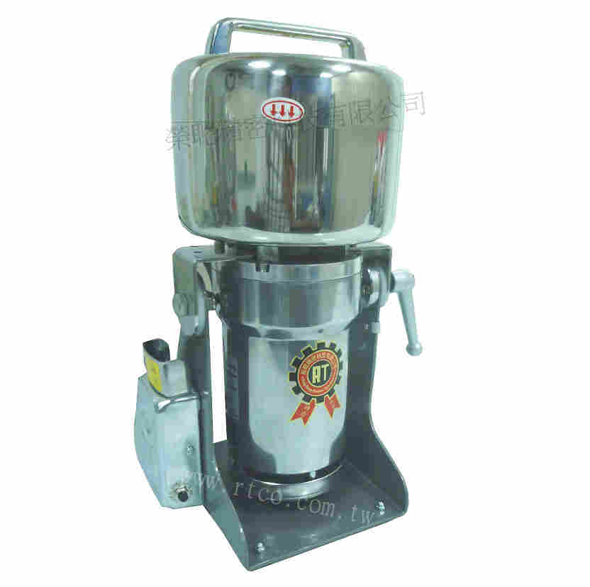 8两装高速粉碎机RT-N08 容量加大! 马力增强!用途广泛,深受顾客喜爱。适用于中、西药业、食品业、农渔饲料业、矿物业、化妆品、化工原料业、粉体涂料业及各研究实验室等。其粉碎细度可因粉碎时间长短和粉碎次数,达到150-200目(视原物料特性有所不同)。 1.商品规格:商品型号: RT-N08(350克高速粉碎机) 1) 马力:1800W 2) 电压:220V/单相(50Hz) 110V/单相(60Hz) 可订作不同电 3) 转速:22000RPM 4) 粉碎槽尺寸(H*D):76*174MM 5) 机器尺寸:255*190*403MM 6) 重量:10.3KG 7) 每一批次粉碎重量:350G 粉碎槽有效容量:840cc 粉碎槽全容量:1686cc 8) 尺寸、规格以出厂实物为准,图片仅供参考。 2.商品特点: ① 粉碎槽材质为 SUS304不锈钢材质,符合卫生要求. ② 粉碎槽安全容量为1200CM*3. ③ 马达为铝合金制造,重量轻,散热快. ④ 马达,轴承采用日本NSK制品,提升耐用度. ⑤ 粉碎刀材质为SUS420热处理,耐磨损. ⑥ 附加机体顷倒脚架,方便清除物料. ⑦ 马达装设过负载安全开关,防止线圈烧毁.